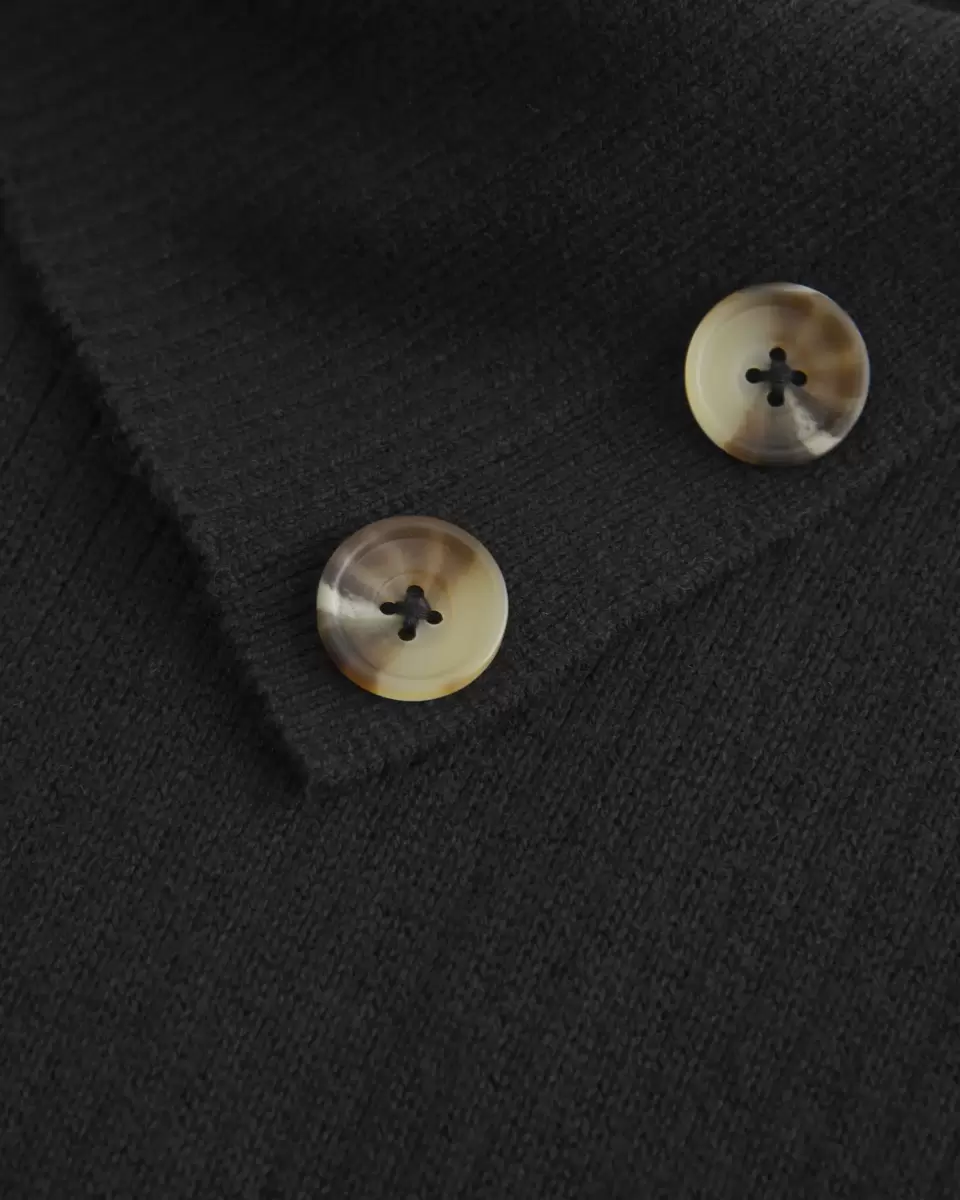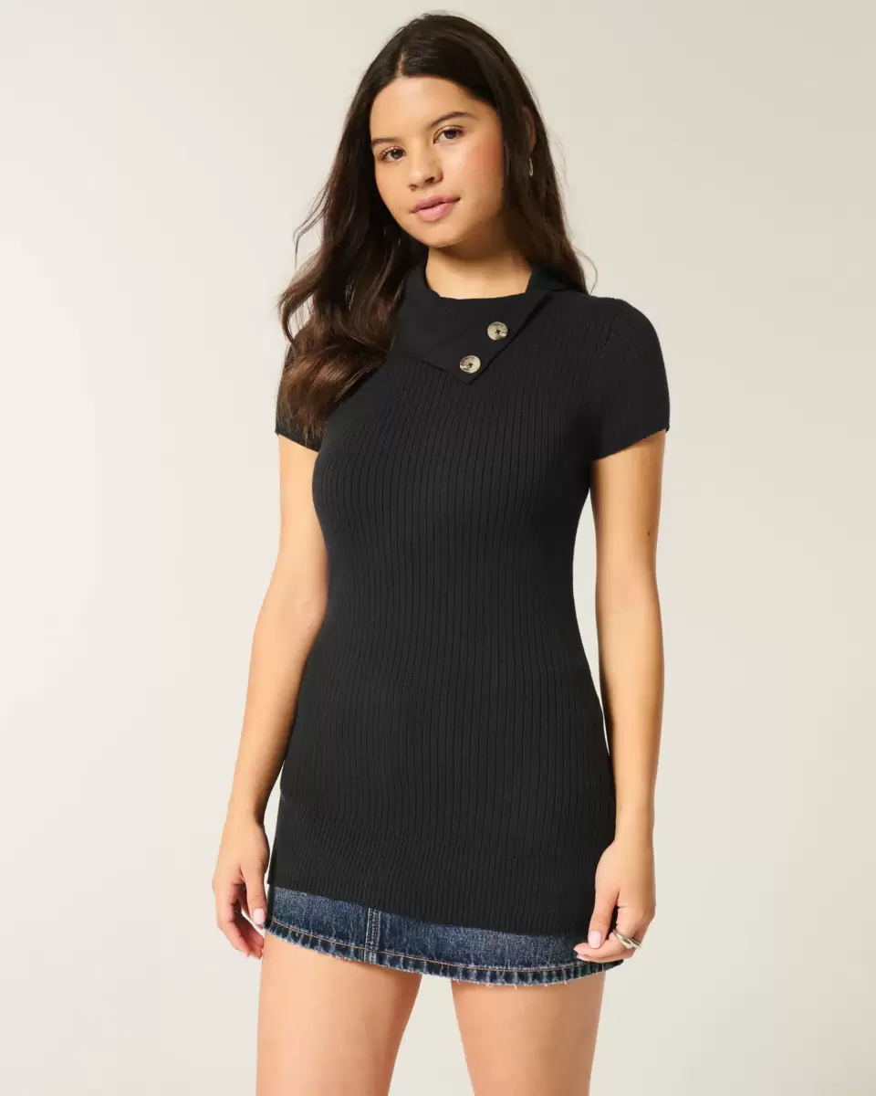 This super soft tunic sweater features a classic asymmetrical collar with buttons and short sleeves. Longer length. Slim Fit.