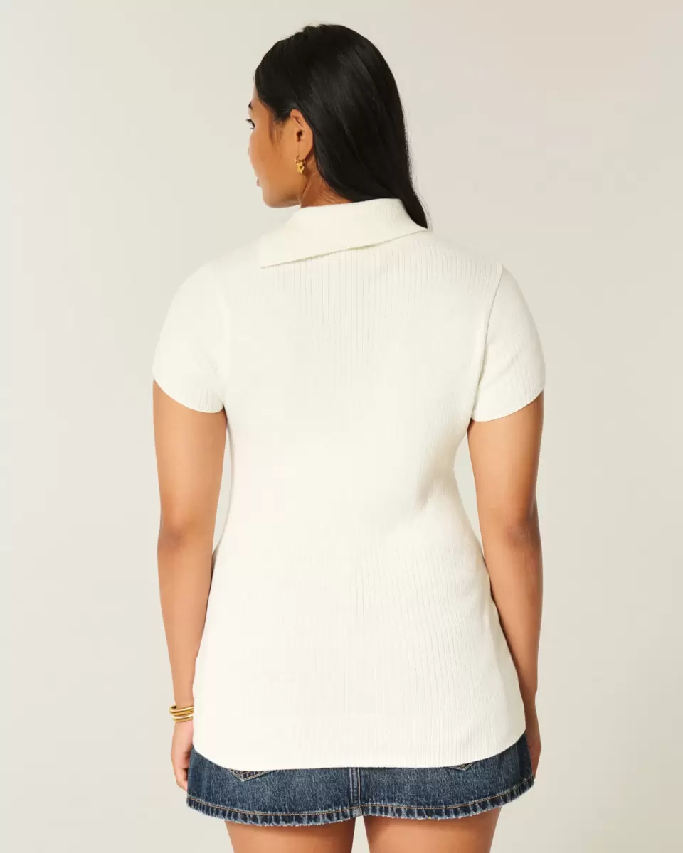 This super soft tunic sweater features a classic asymmetrical collar with buttons and short sleeves. Longer length. Slim Fit.