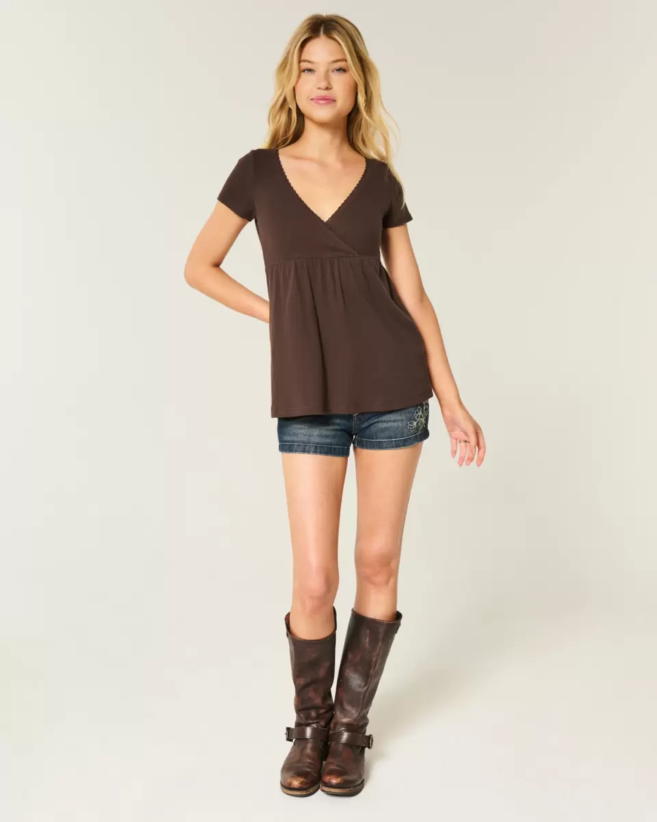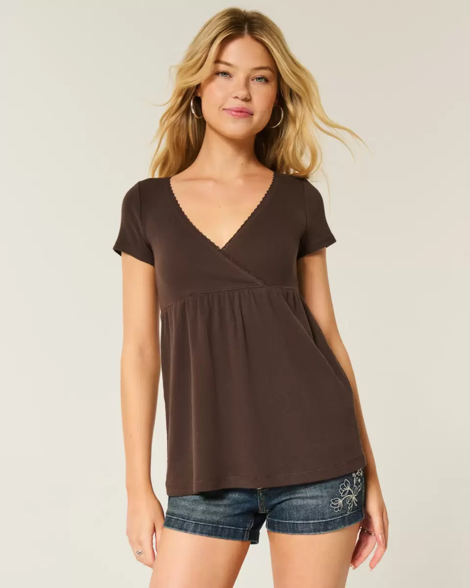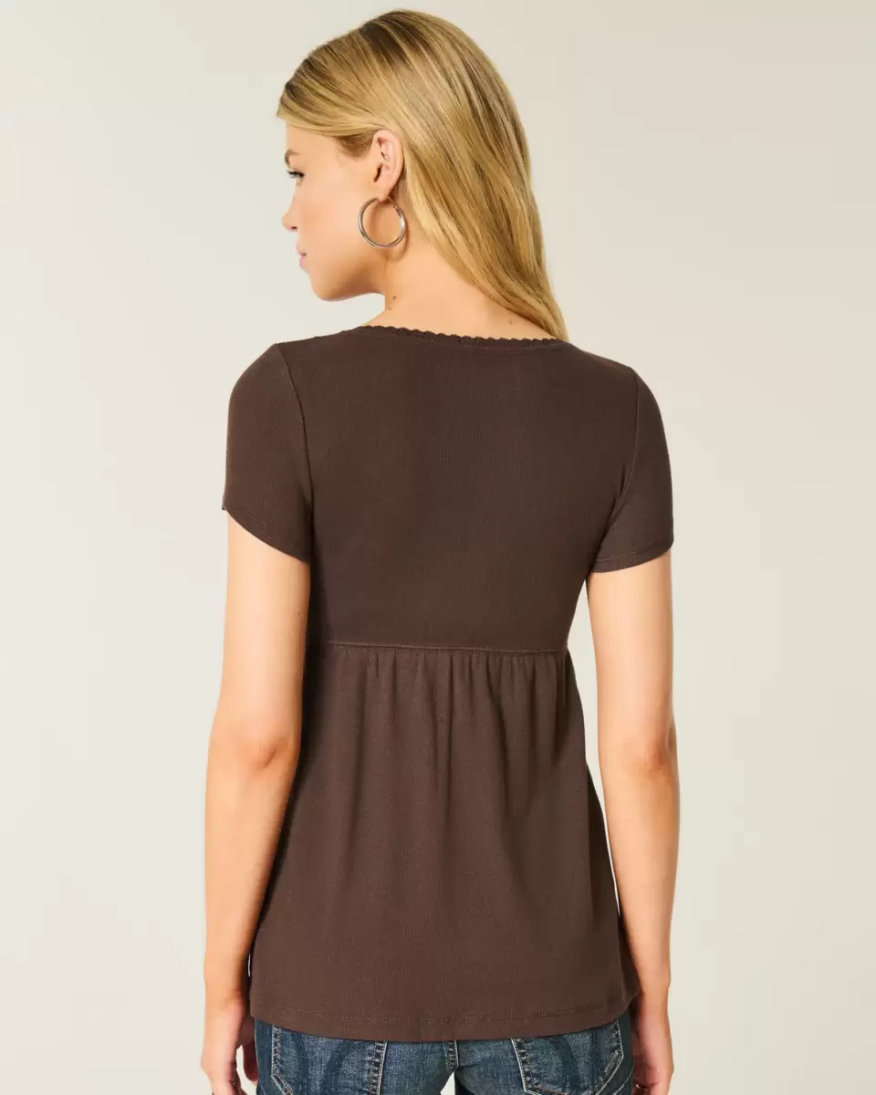 Easy Short-Sleeve Lace Trim Babydoll Top