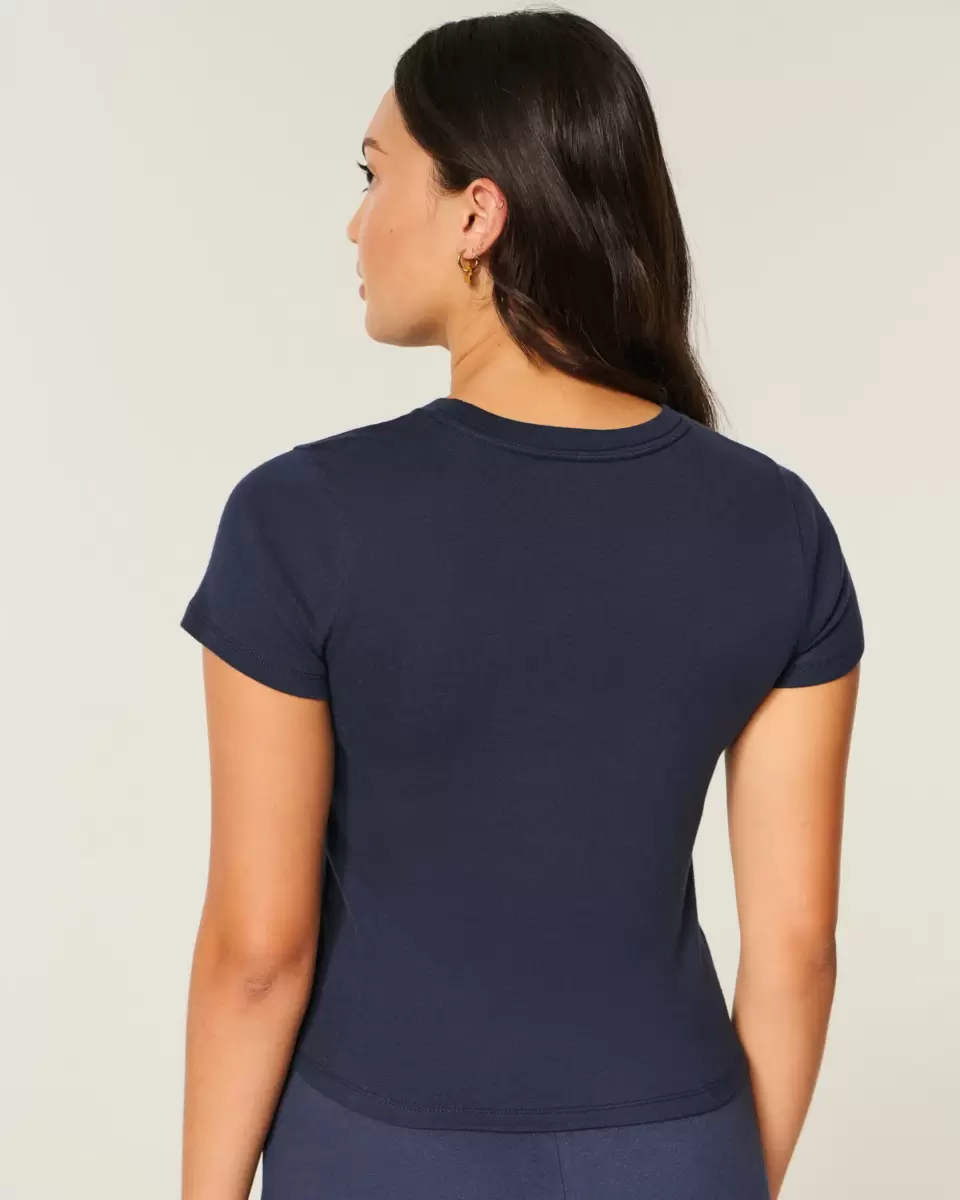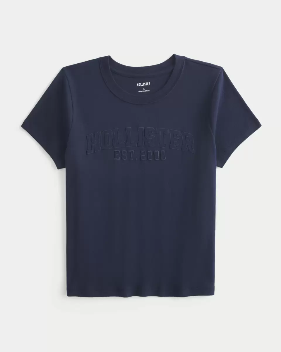 A super soft baby tee designed with a slightly shrunken silhouette, featuring logo graphic embroidery. Crew neckline, short sleeves. Slim Fit. Imported.