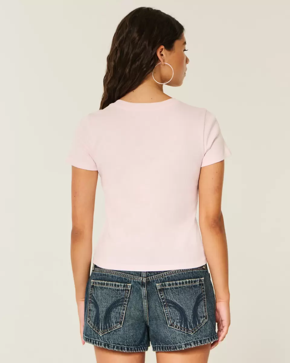 A super soft baby tee designed with a slightly shrunken silhouette, featuring logo graphic embroidery. Crew neckline, short sleeves. Slim Fit. Imported.