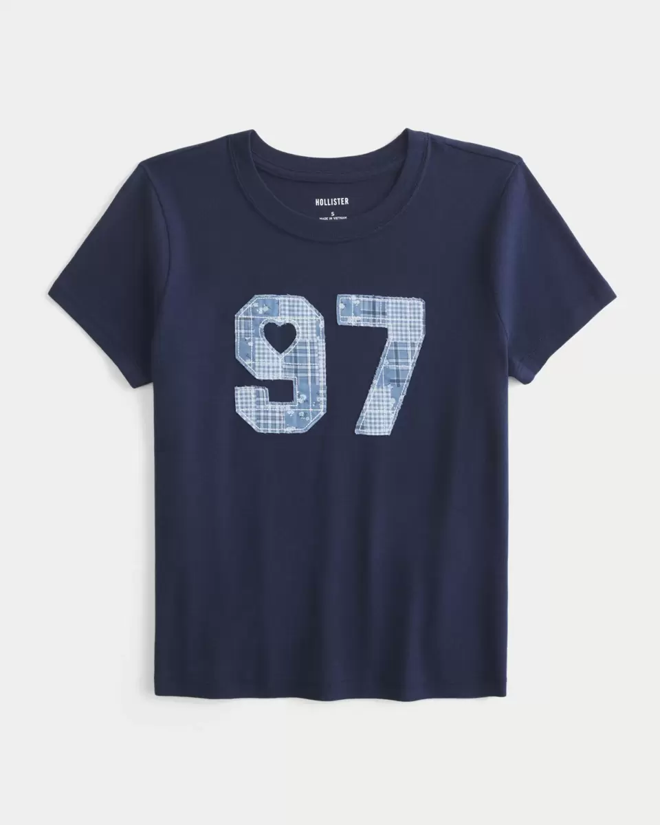 A super soft baby tee featuring butterfly pattern filled number graphic applique. Slightly shrunken silhouette, short sleeves, crew neckline. Slim Fit. Imported.