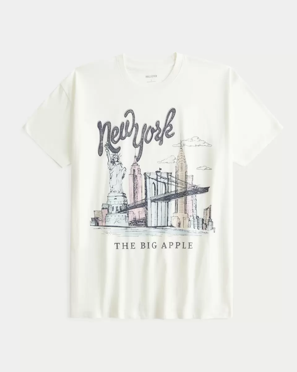 A super soft 100% cotton tee featuring New York The Big Apple print graphics. Crew neckline, short sleeves. Oversized Fit. Imported.