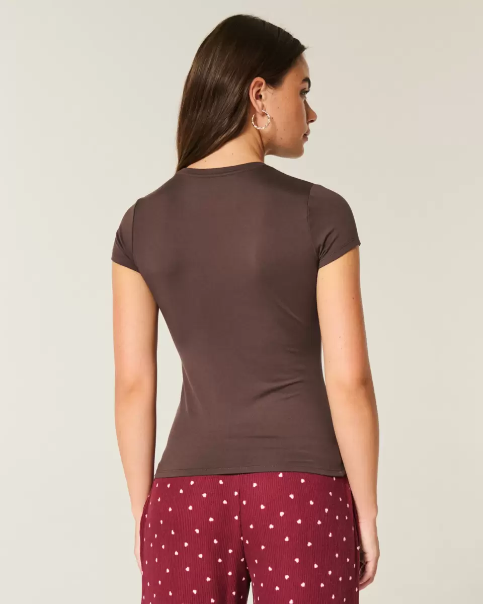 A cute and comfy baby tee in super soft fabric with a seamless look and feel, designed with a slightly shrunken silhouette. Crew neckline, short sleeves. Imported.