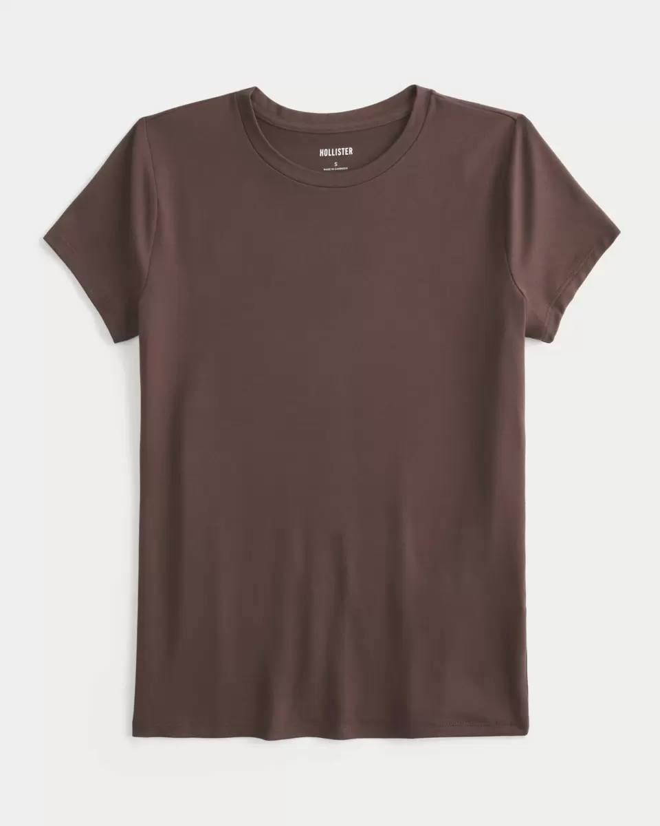 A cute and comfy baby tee in super soft fabric with a seamless look and feel, designed with a slightly shrunken silhouette. Crew neckline, short sleeves.