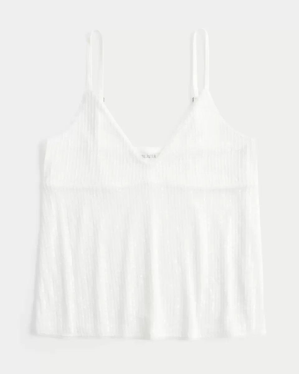 This super soft and cute cami features all-over shine details, adjustable straps and a v-neckline. Easy Fit. Imported.