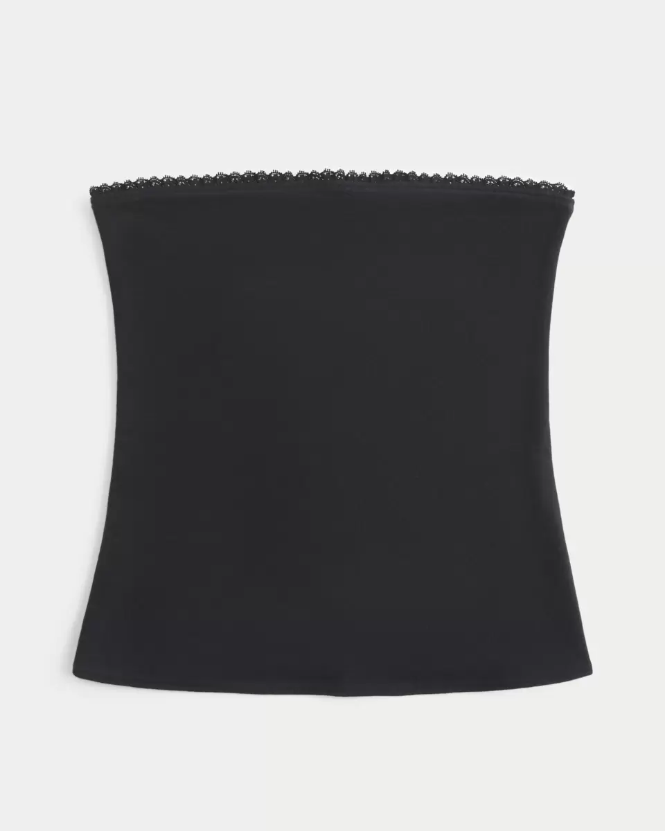 This cute and comfy tube top is made with a super soft cotton blend. Pretty lace trim, looks amazing folded over and not folded over! Slim Fit. Imported.